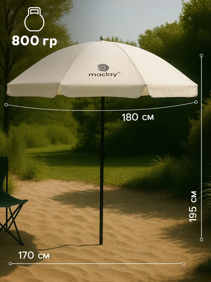Зонт пляжный maclay, с УФ-защитой, d=180 см, h=195 см — Характеристики