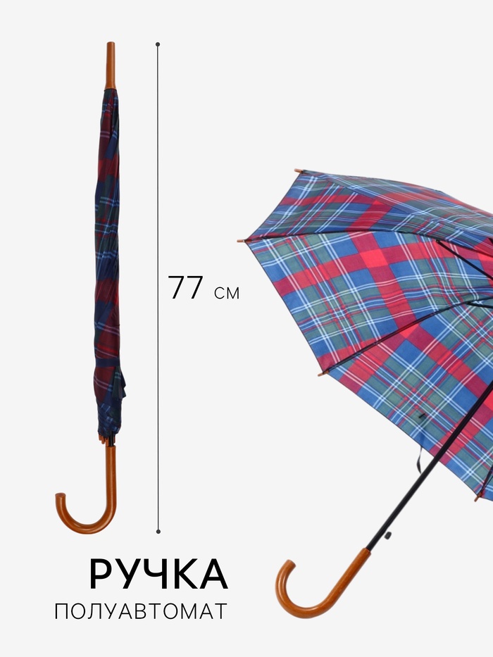 Зонт полуавтоматический «Клетка», 8 спиц, R=48/55 см, d=96 см, МИКС — Характеристики