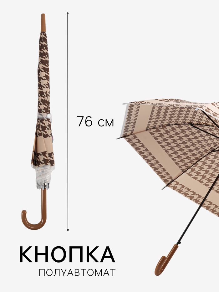 Зонт полуавтоматический «Лапка», 8 спиц, R=46/54 см, d=92 см, бежевый — Характеристики