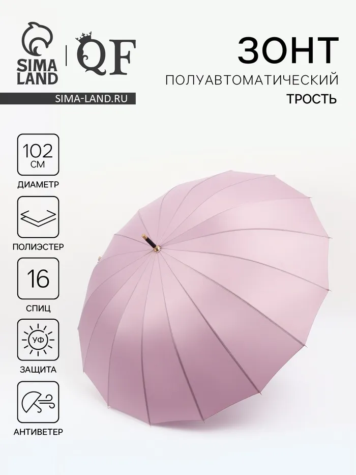 Зонт полуавтоматический «Однотон», 16 спиц, R=51/60 см, d=102 см, розовый — Характеристики