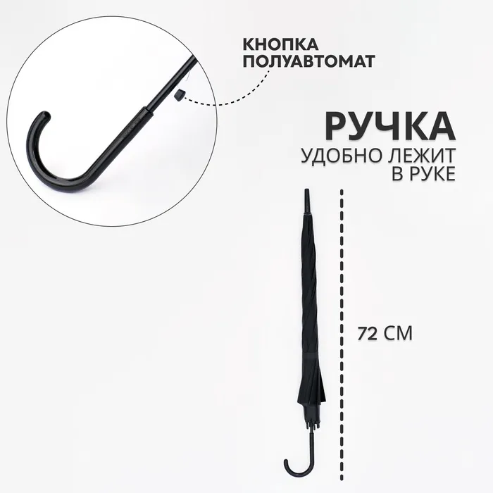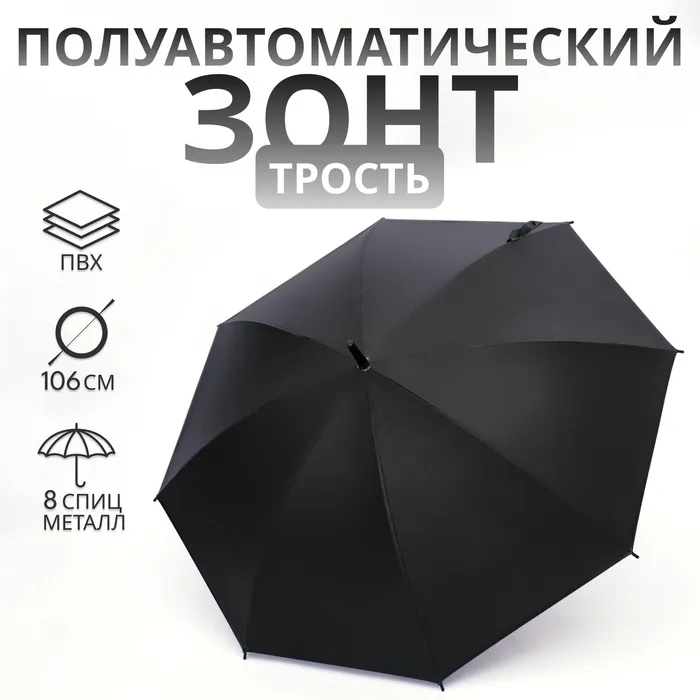 Зонт полуавтоматический «Однотон», 8 спиц, R=45/53 см, D = 90 см, чёрный — Характеристики