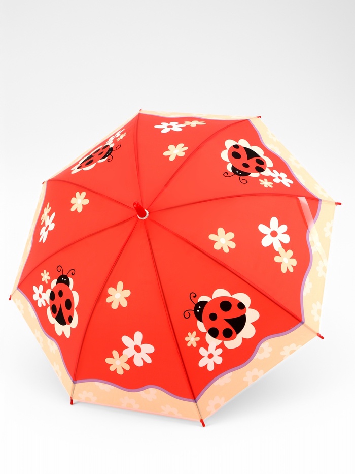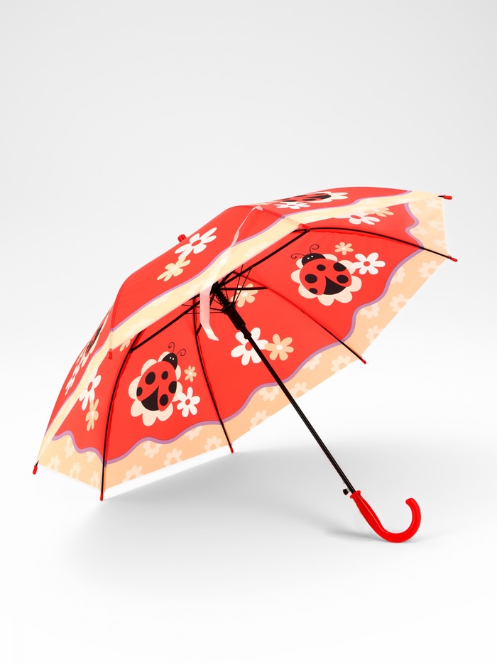 Зонт - трость детский «Божья коровка», полуавтоматический, 8 спиц, R=40/47 см, d=80 см, красный — Характеристики