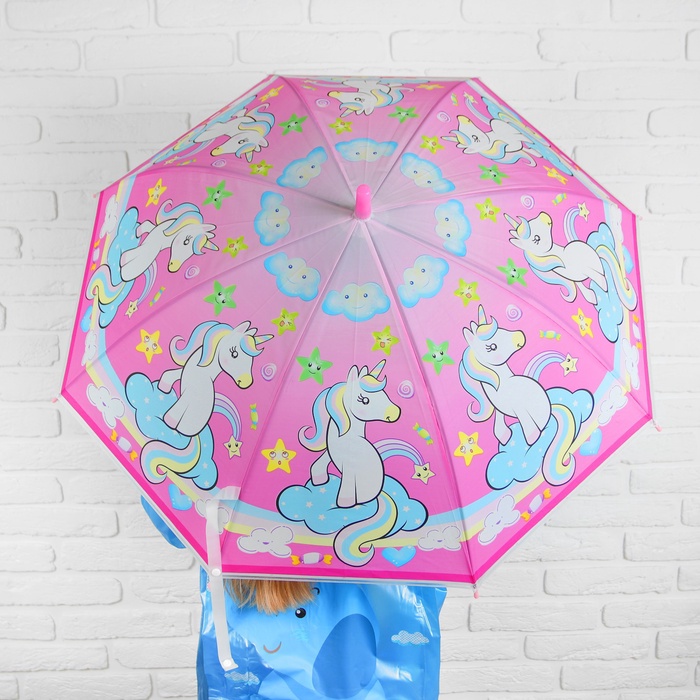 Зонт - трость детский «Единорог с радугой», полуавтоматический, 8 спиц, R=40/47 см, d=80 см, розовый — Характеристики