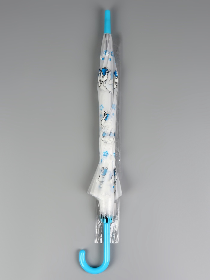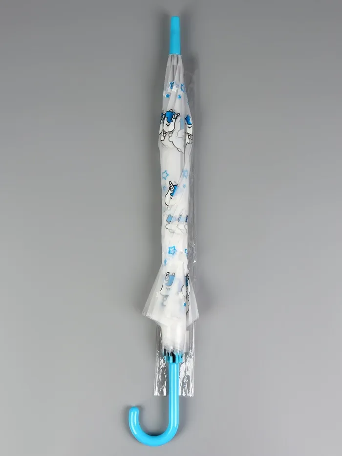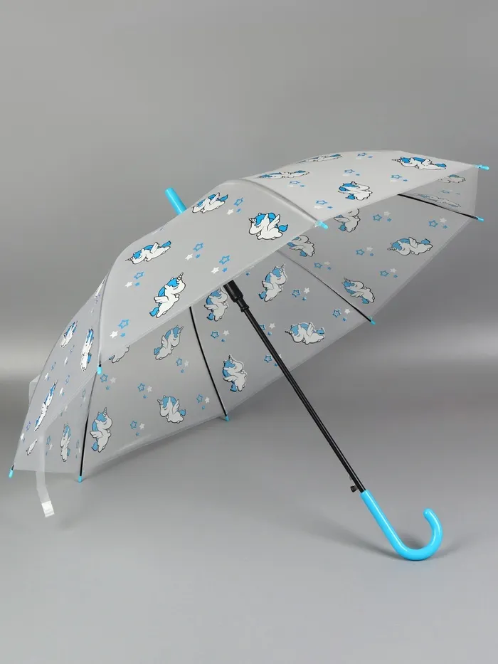 Зонт - трость детский «Единороги», полуавтоматический, 8 спиц, R=45/54 см, d=90 см, прозрачный, белый, голубой — Характеристики