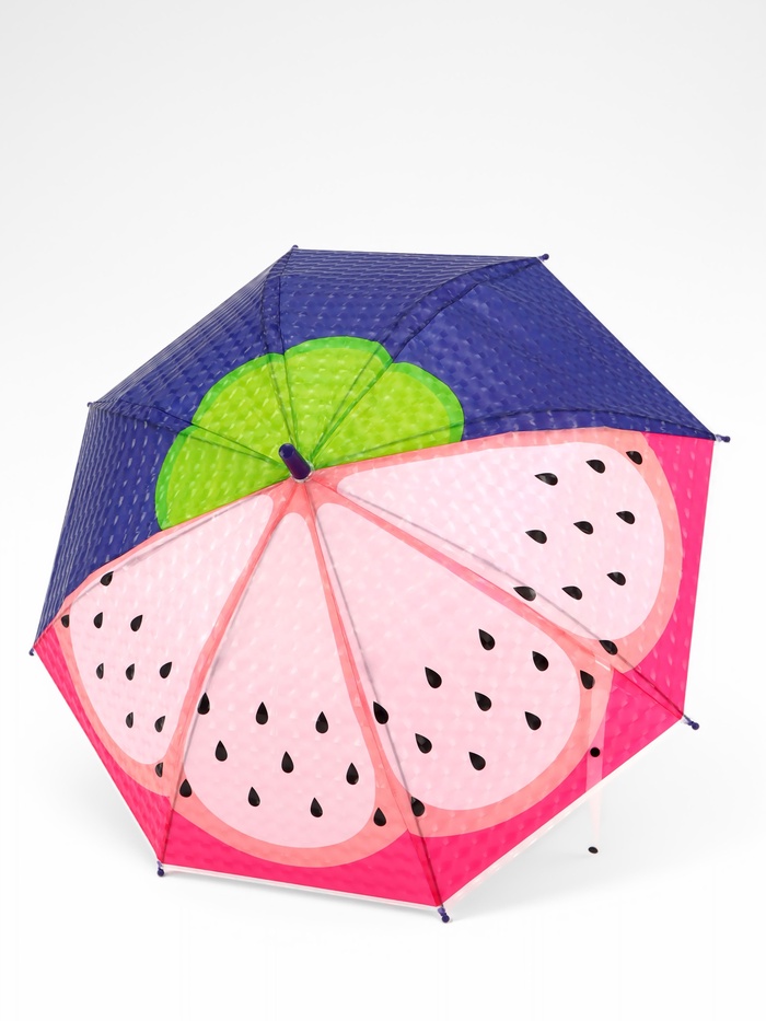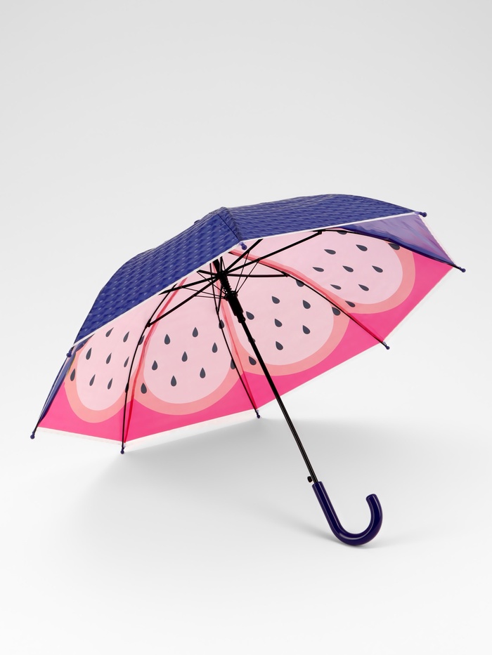 - Привлекательный дизайн: сочное изображение фруктов на ярком фоне вызывает восторг у детей и делает зонт стильным дополнением любого образа.