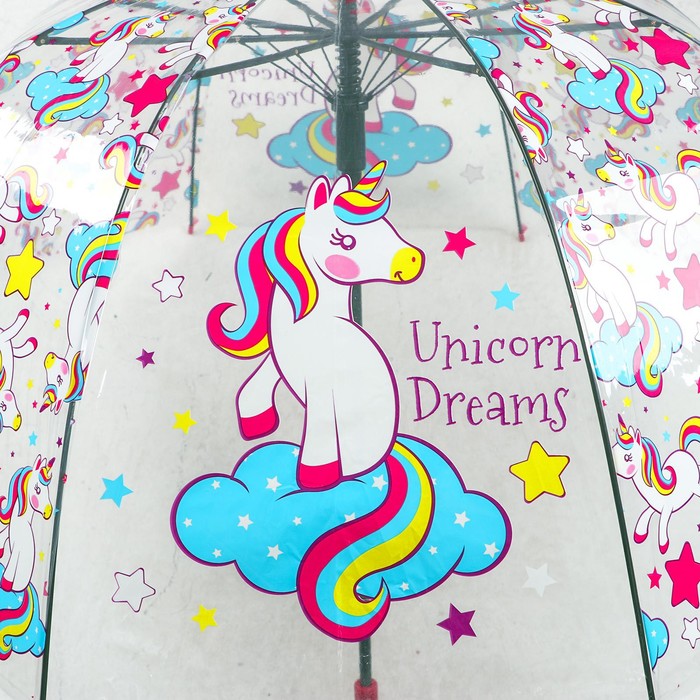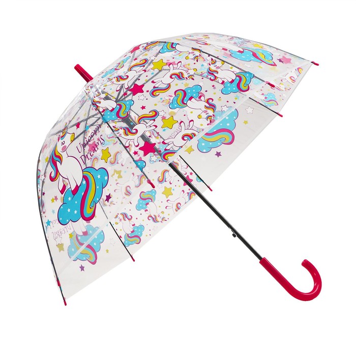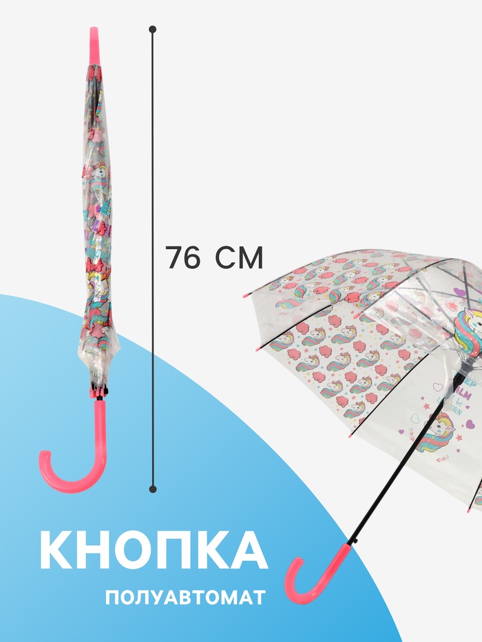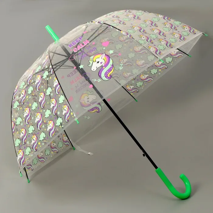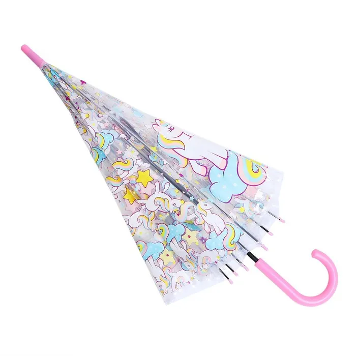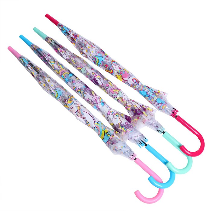 Зонт - трость детский «Яркий единорог», полуавтоматический, 8 спиц, R=44/57 см, d=88 см, МИКС — Характеристики