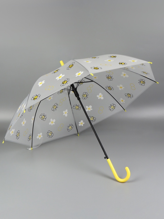 Зонт - трость детский «Пчёлки», полуавтоматический, 8 спиц, R=45/54 см, D=90 см, прозрачный, белый, жёлтый — Характеристики