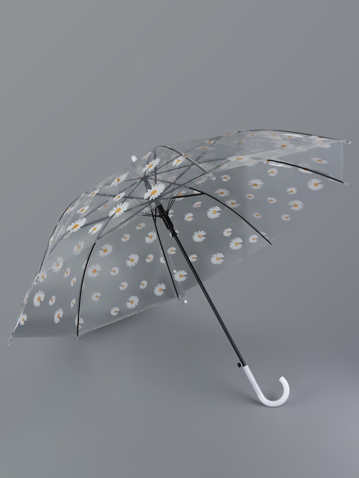 Зонт - трость детский «Ромашка», полуавтоматический, 8 спиц, R=45/55 см, d=90 см, прозрачный — Характеристики