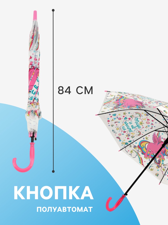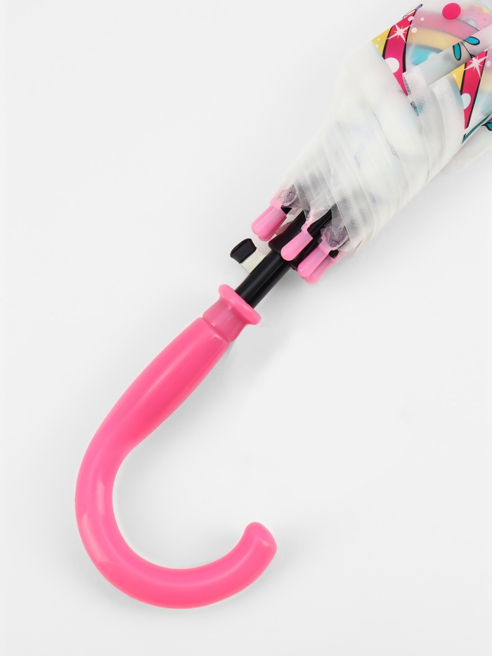 Представляем очаровательный аксессуар, который станет верным спутником вашей маленькой принцессы в дождливые дни — белый зонт-трость с изображением розового единорога. Этот яркий и функциональный зонт не только защитит от капель дождя, но и подарит море положительных эмоций, превращая каждую прогулку в волшебное приключение.