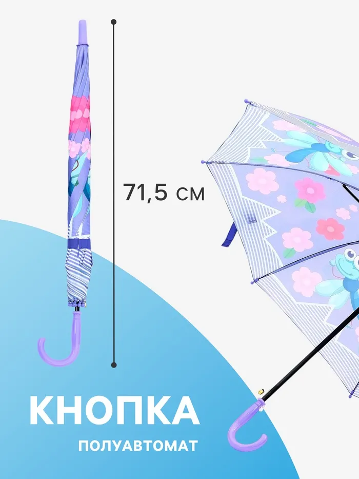 Зонт - трость детский «Животные», полуавтоматический, R=43/50 см, d=86 см, МИКС — Характеристики