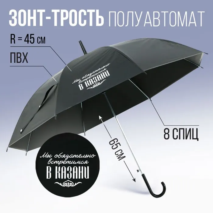 Зонт трость полуавтомат «Мы обязательно встретимся в Казани», цвет черный, 8 спиц, R = 45 см — Характеристики