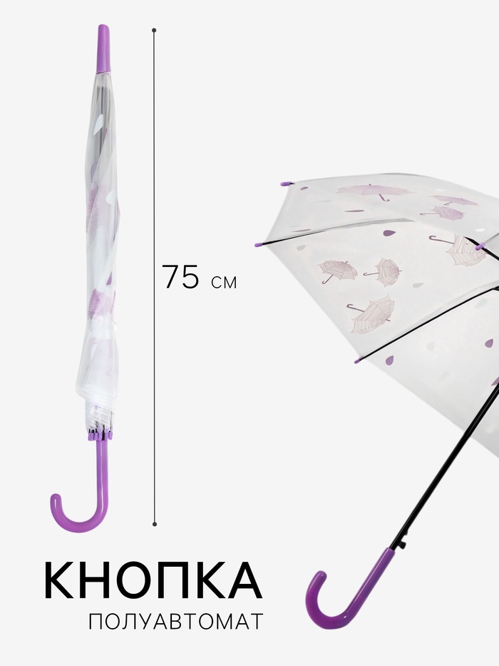 Зонт - трость полуавтоматический, 8 спиц, R=48/53 см, d=96 см, МИКС — Характеристики