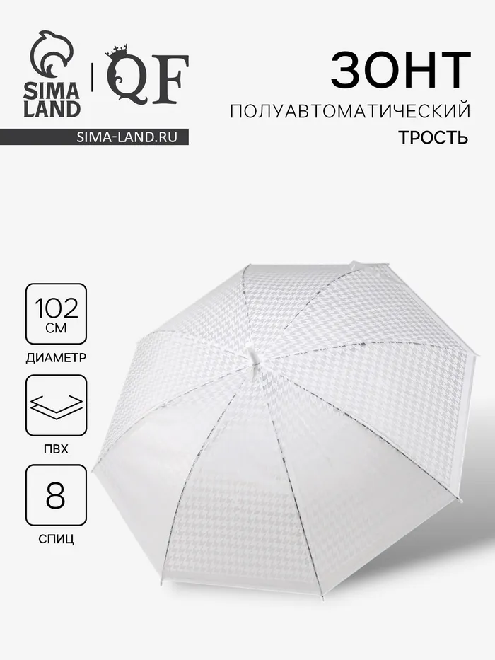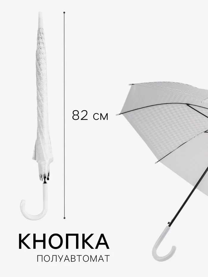 Зонт - трость полуавтоматический, 8 спиц, R=51/58 см, d=102 см, белый — Характеристики