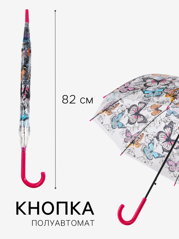 Зонт - трость полуавтоматический «Бабочки», 8 спиц, R=43/60 см, d=86 см, рисунок МИКС — Характеристики