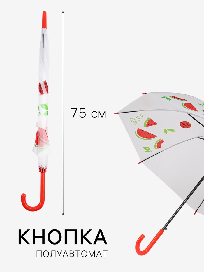 Зонт - трость полуавтоматический «Фрукты», 8 спиц, R=45/55 см, d=90 см, рисунок МИКС — Характеристики