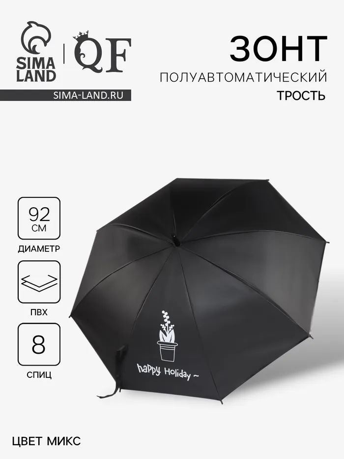 Зонт - трость полуавтоматический Happy holiday, 8 спиц, R=46/54 см, d=92 см, рисунок МИКС — Характеристики