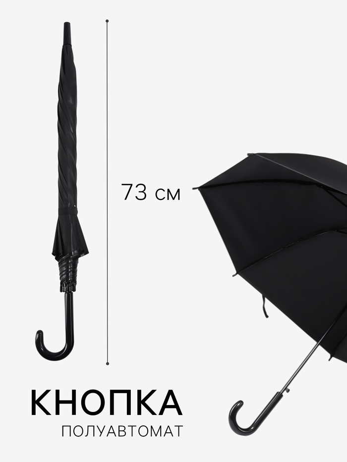 Элегантный зонт - трость сохранит вашу причёску и макияж. Благодаря широкому и прочному куполу он обеспечит наилучшую защиту от непогоды.