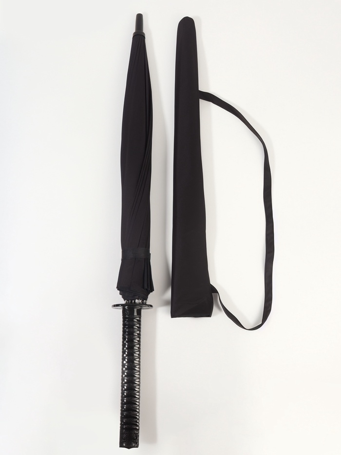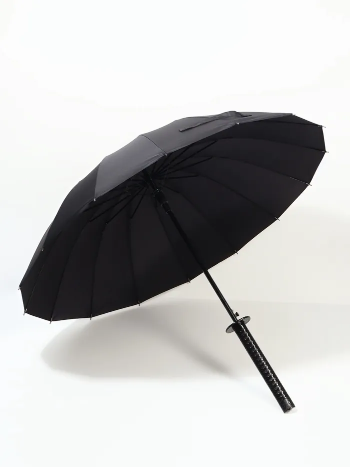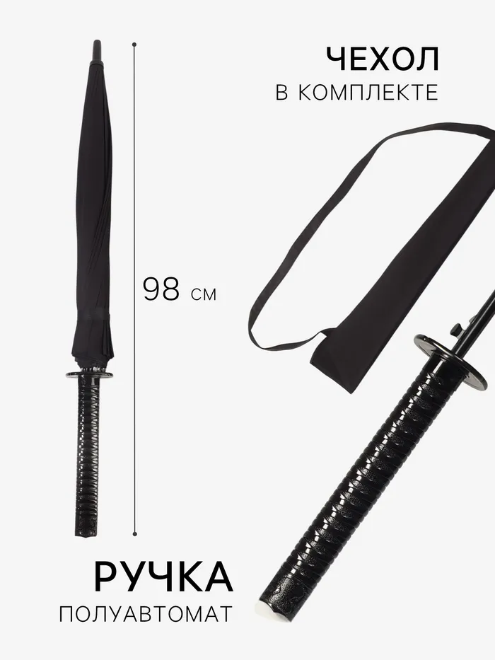 Зонт - трость полуавтоматический «Катана», эпонж, 16 спиц, R=51/60 см, d=102 см, чёрный — Характеристики
