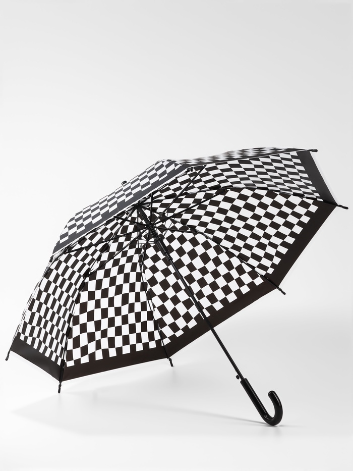 Элегантный зонт - трость сохранит вашу причёску и макияж. Благодаря широкому и прочному куполу он обеспечит наилучшую защиту от непогоды.