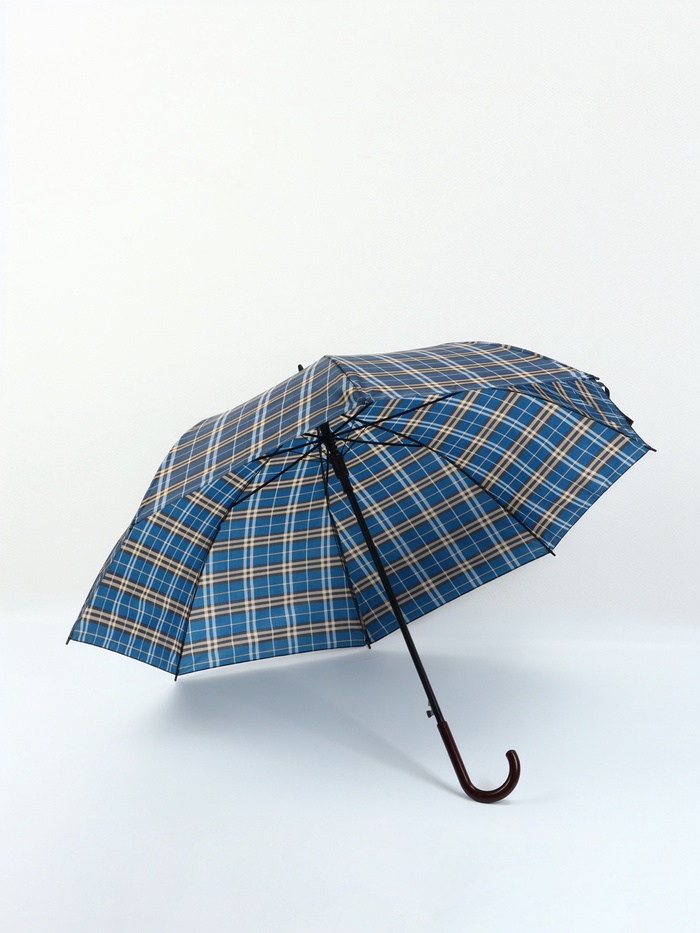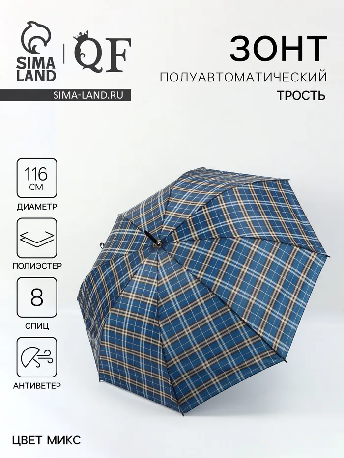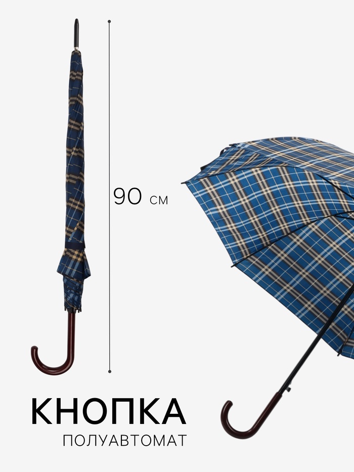 Зонт - трость полуавтоматический «Клетка», 8 спиц, R=58/68 см, d=116 см, синий — Характеристики