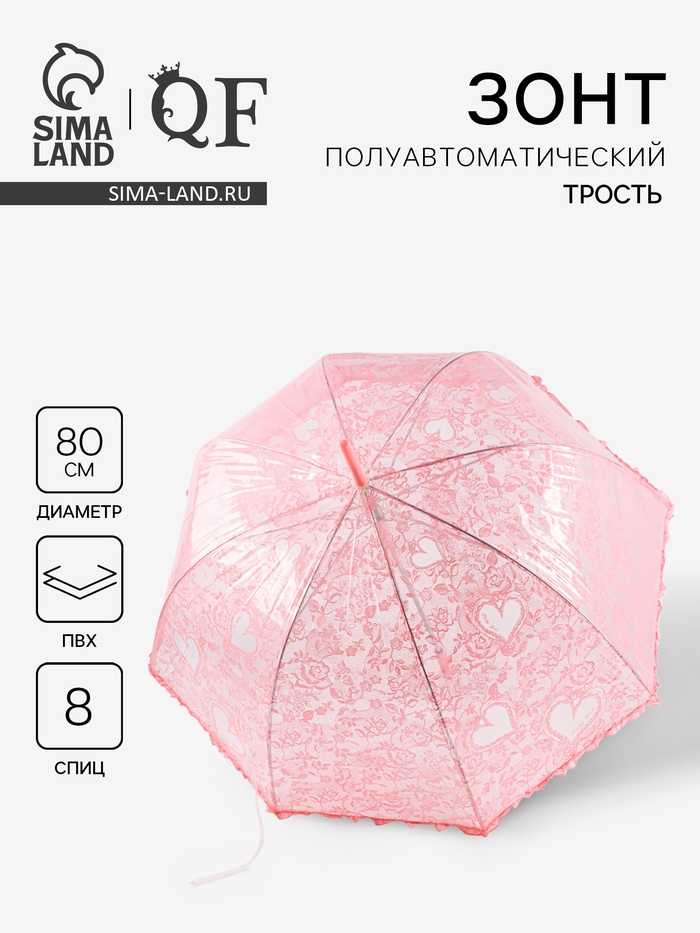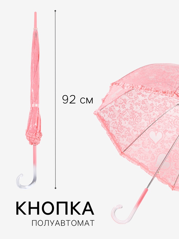 Зонт - трость полуавтоматический «Кружево», 8 спиц, R=40/58 см, d=80 см, розовый, прозрачный — Характеристики