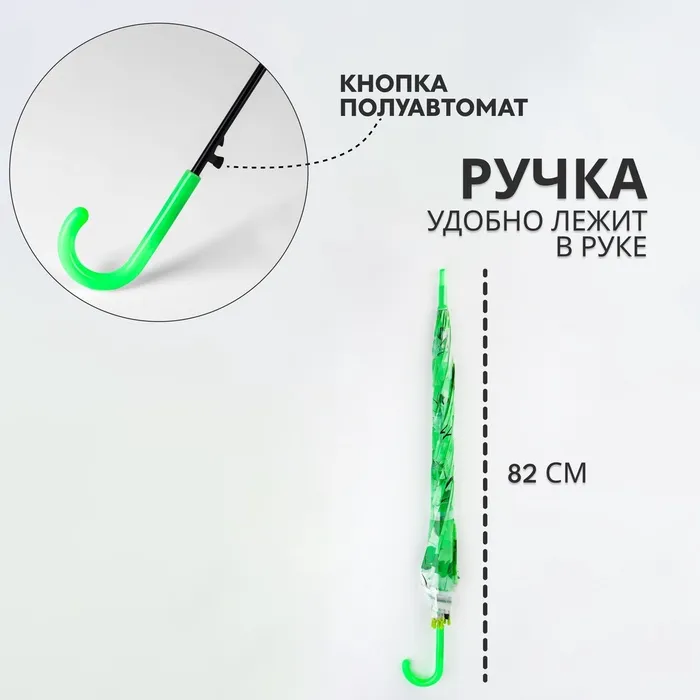Размеры зонта обеспечивают комфорт и защиту. Радиус внутри зонта (до ручки) = 45 см, поверху = 55 см. Ручка удобно ляжет в руке, а необычная расцветка поднимет настроение даже в самый пасмурный день.