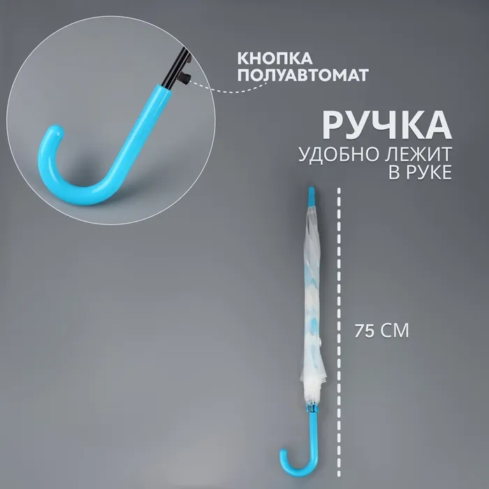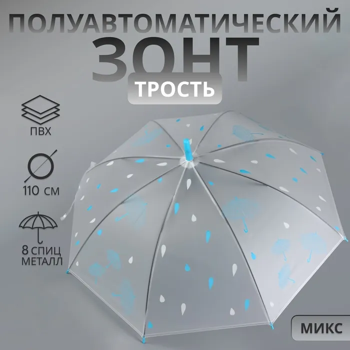 Зонт - трость полуавтоматический «Мелкие зонтики», 8 спиц, R=45/55 см, d=90 см, рисунок МИКС — Характеристики
