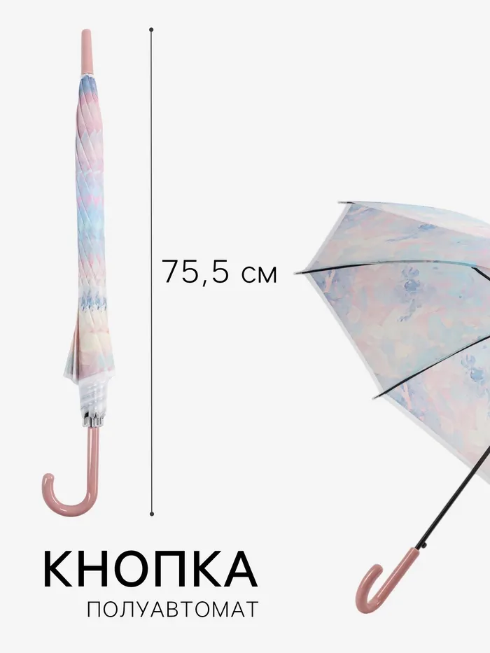 Зонт - трость полуавтоматический «Нежность», 8 спиц, R=47/55 см, d=94 см, МИКС — Характеристики
