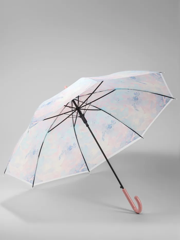 Элегантный зонт - трость сохранит вашу причёску и макияж. Благодаря широкому и прочному куполу он обеспечит наилучшую защиту от непогоды.