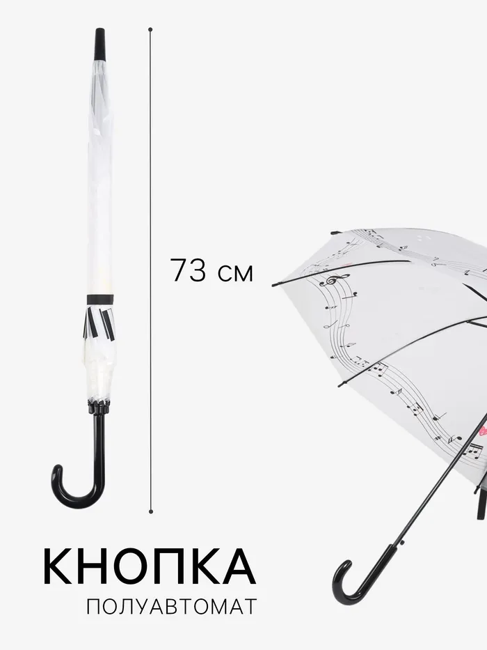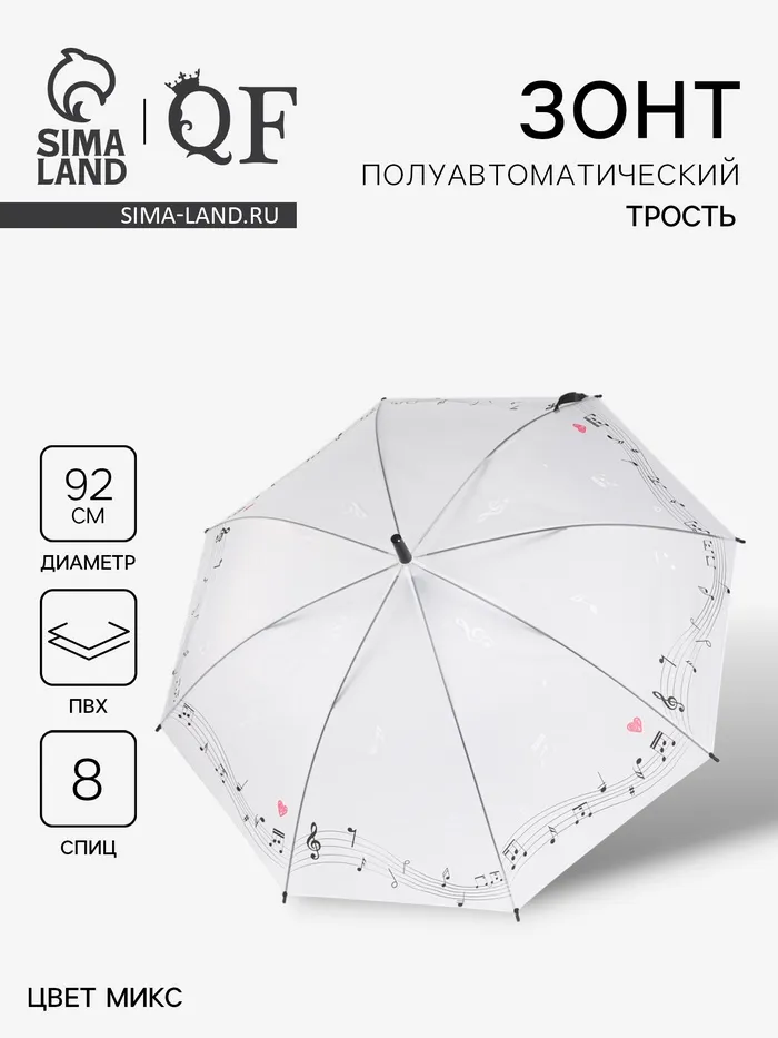 Зонт - трость полуавтоматический «Ноты», 8 спиц, R=46/54 см, d=92 см, рисунок МИКС — Характеристики