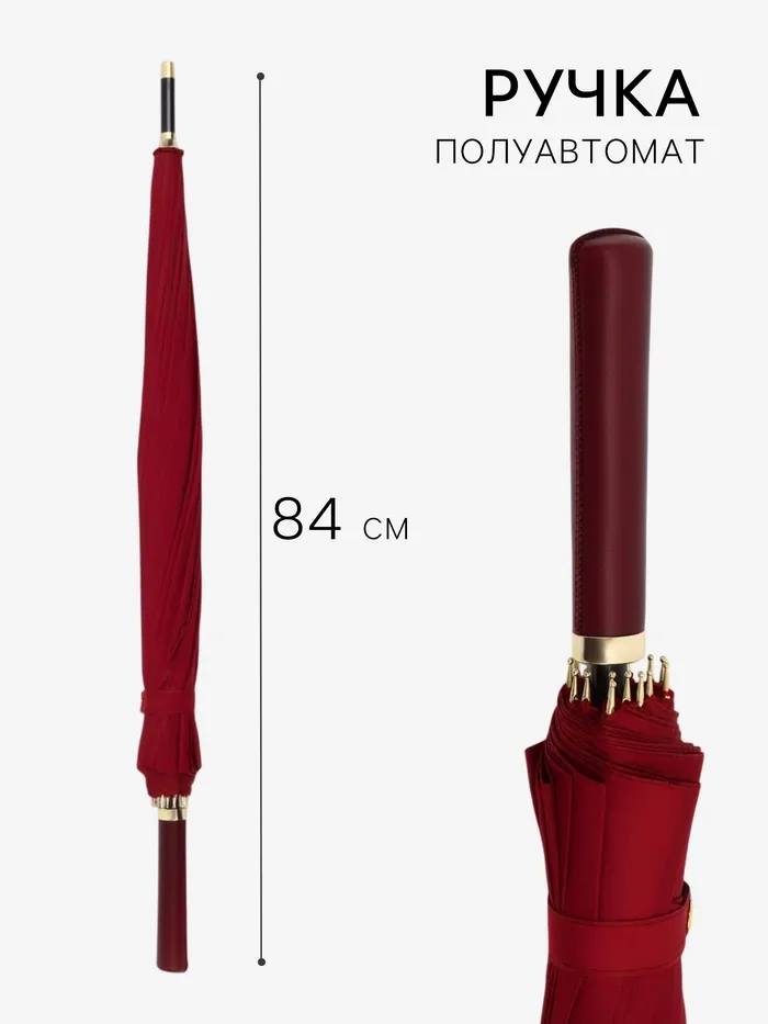 Зонт - трость полуавтоматический «Однотон», 16 спиц, R=51/60 см, d=102 см, бордовый — Характеристики