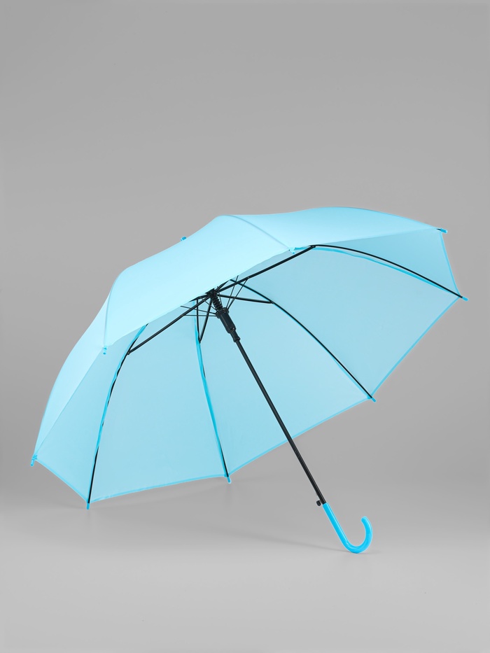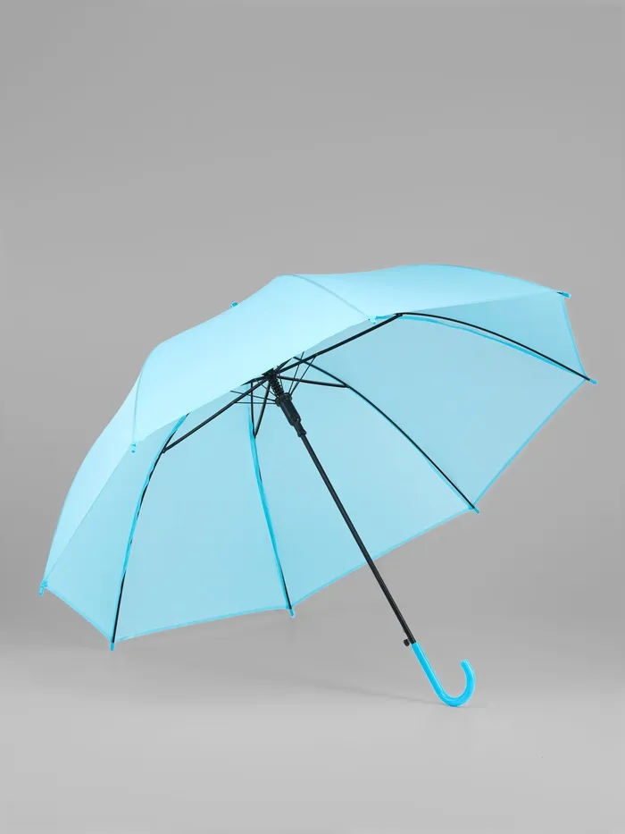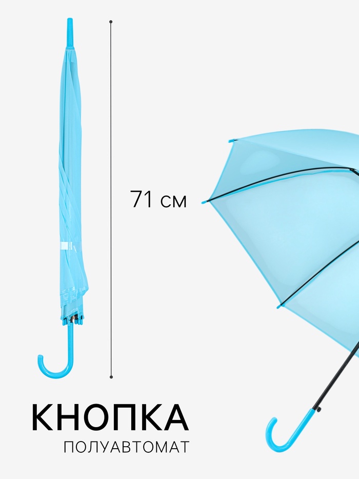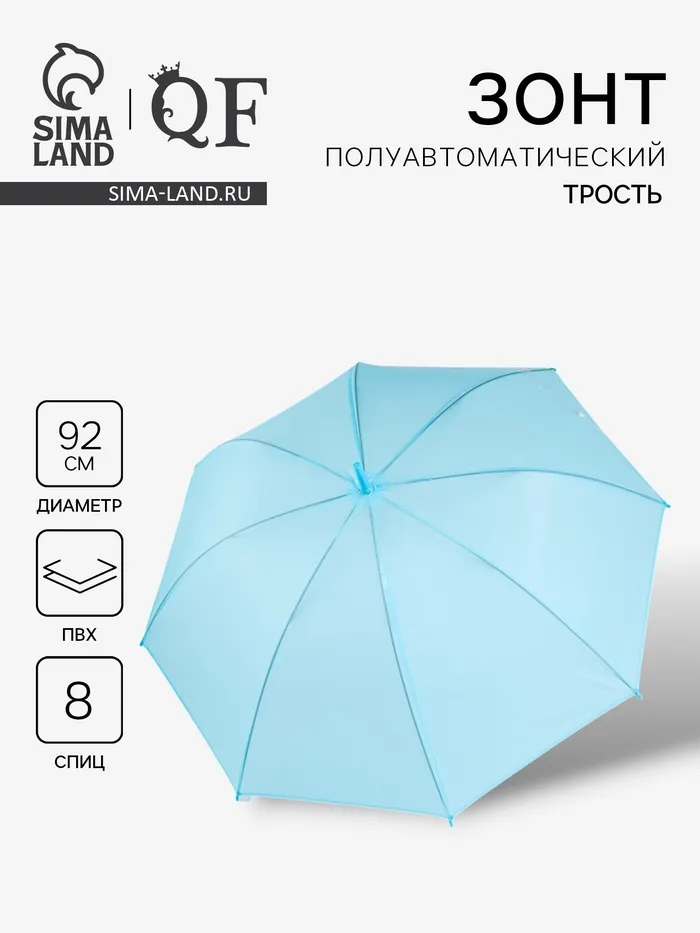 Зонт - трость полуавтоматический «Однотон», 8 спиц, R=46/55 см, d=92 см, голубой — Характеристики
