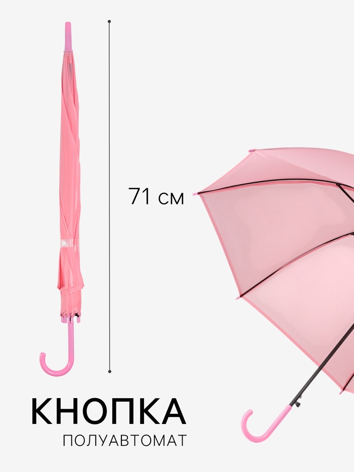 Зонт - трость полуавтоматический «Однотон», 8 спиц, R=46/55 см, d=92 см, розовый — Характеристики