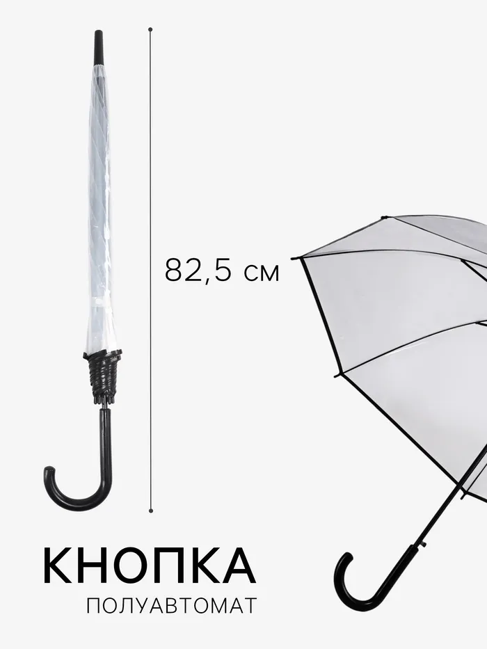 Зонт - трость полуавтоматический «Однотон», 8 спиц, R=51/58 см, d=102 см, прозрачный — Характеристики