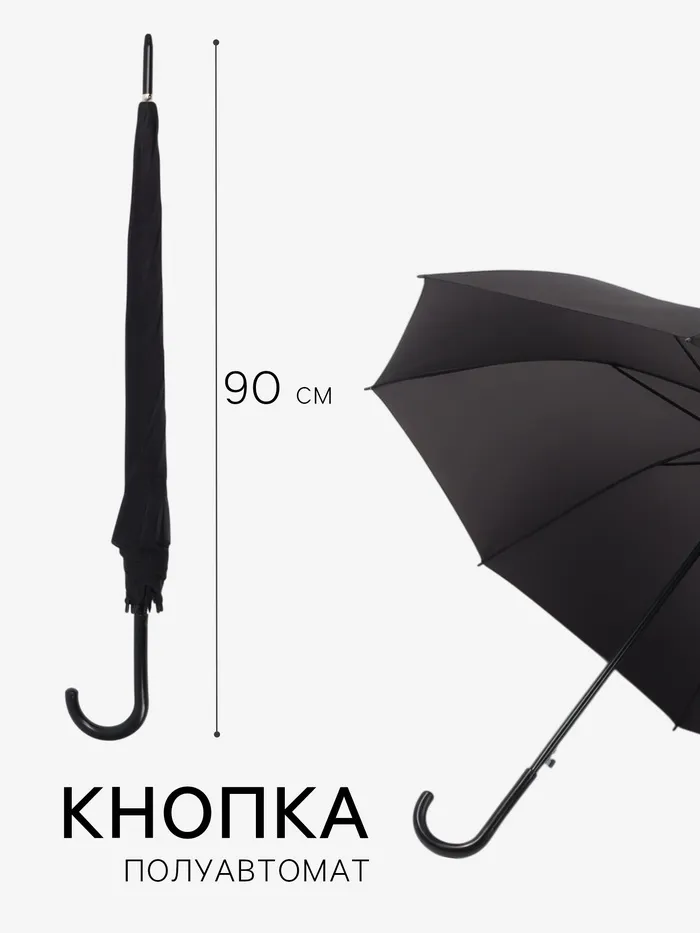 Зонт - трость полуавтоматический «Однотон», 8 спиц, R=56/67 см, d=112 см, чёрный — Характеристики
