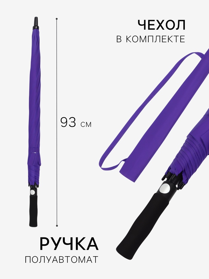 Зонт - трость полуавтоматический «Однотон», эпонж, 8 спиц, R=60/70 см, d=120 см, фиолетовый — Характеристики