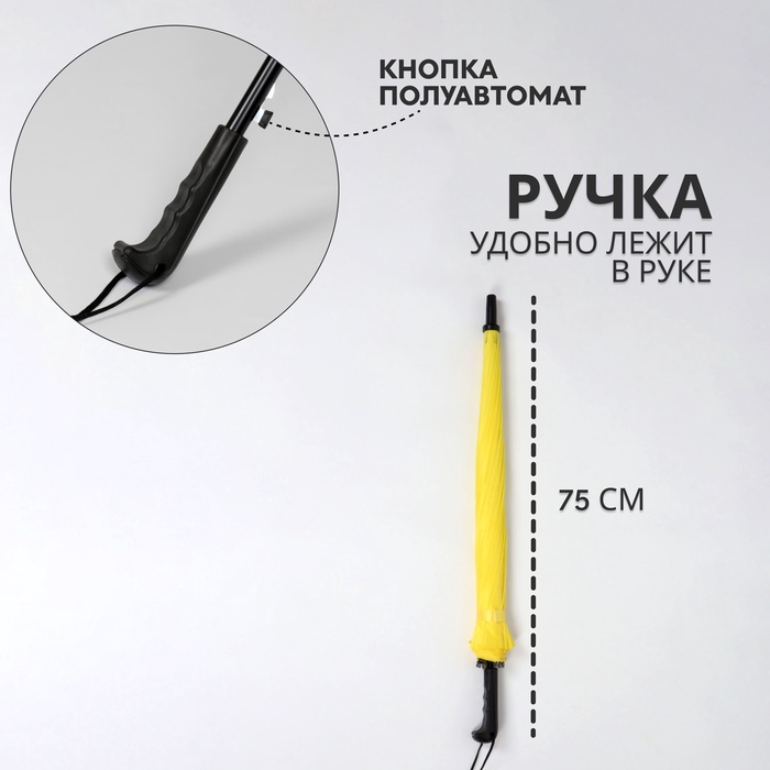 Зонт - трость полуавтоматический «Однотонный», 16 спиц, R=46/55 см, d=92 см, МИКС — Характеристики