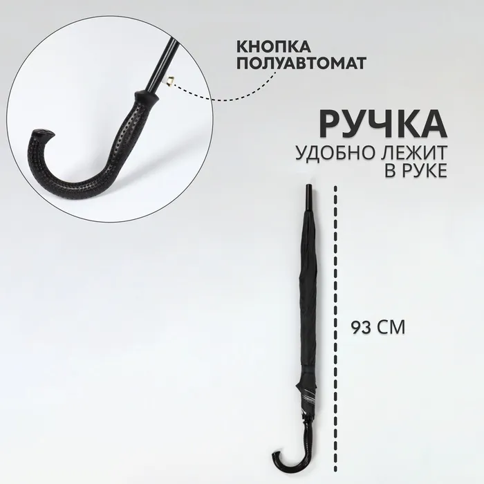 Элегантный зонт – трость сохранит вашу причёску и одежду сухими. Благодаря широкому и прочному куполу он обеспечит наилучшую защиту от непогоды.