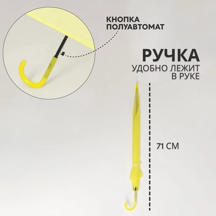 Зонт - трость полуавтоматический «Однотонный», 8 спиц, R=46/55 см, D = 92 см, жёлтый — Характеристики