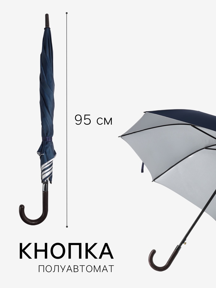 Элегантный зонт – трость сохранит вашу причёску и одежду сухими. Благодаря широкому и прочному куполу он обеспечит наилучшую защиту от непогоды.