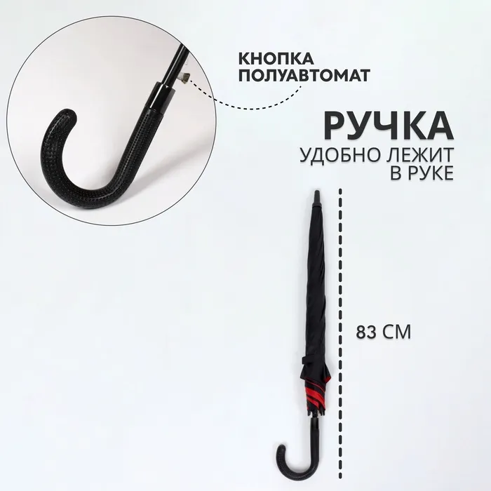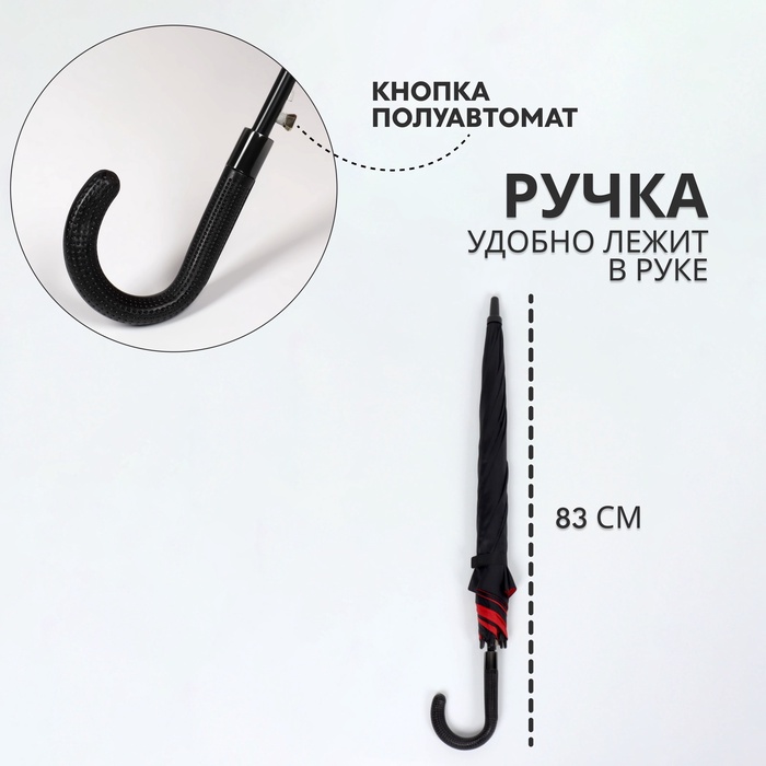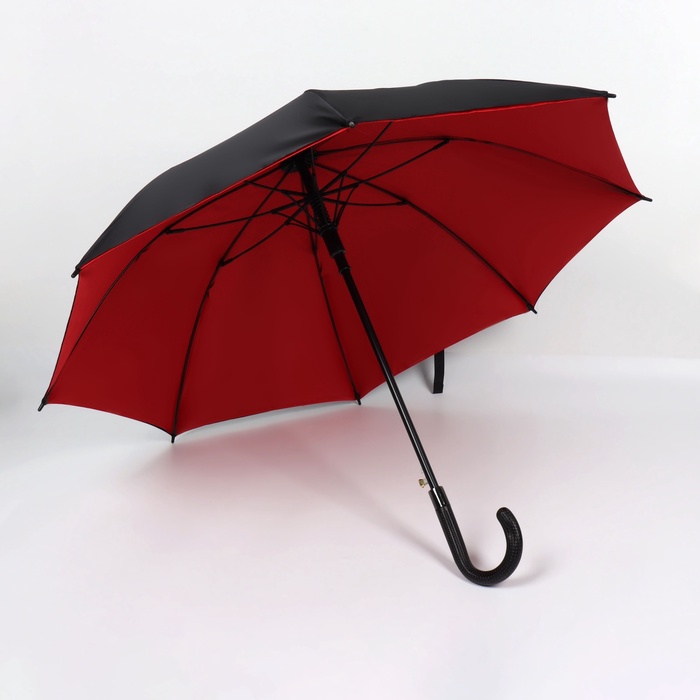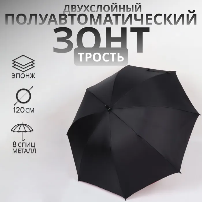 Зонт - трость полуавтоматический «Однотонный», эпонж, двухслойный, 8 спиц, R=51/60 см, d=102 см, чёрный, красный — Характеристики