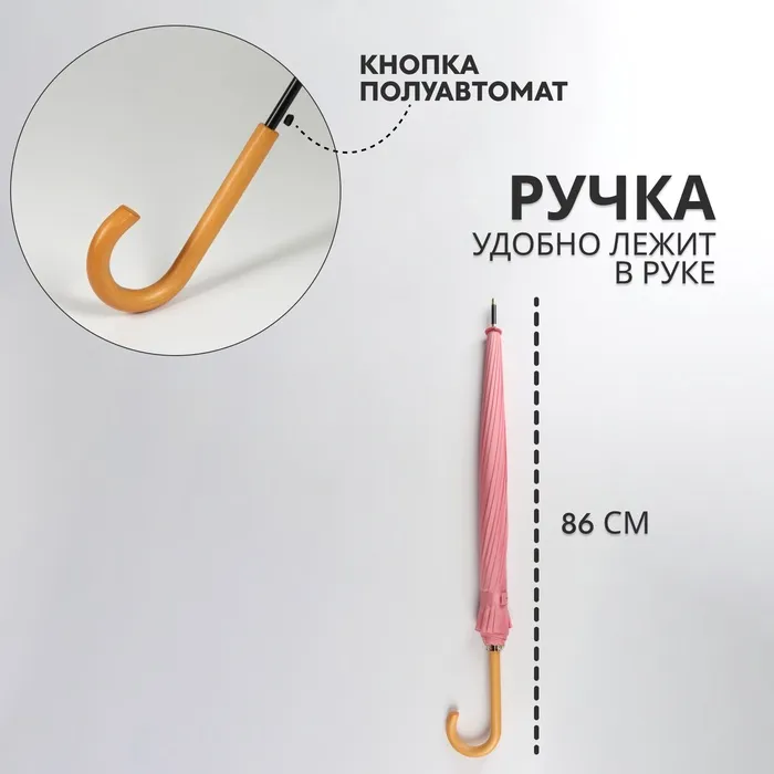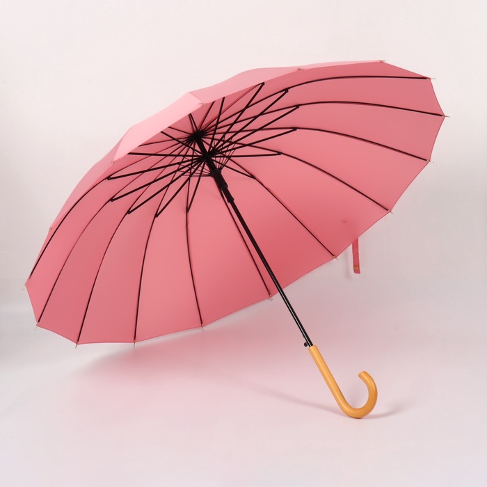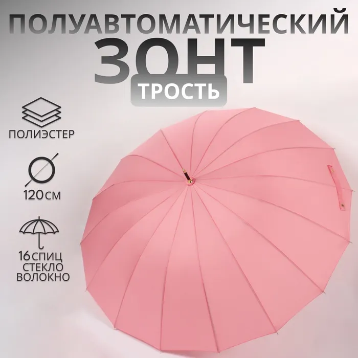 Зонт - трость полуавтоматический «Пастель», 16 спиц, R=52/60 см, d=104 см, розовый — Характеристики