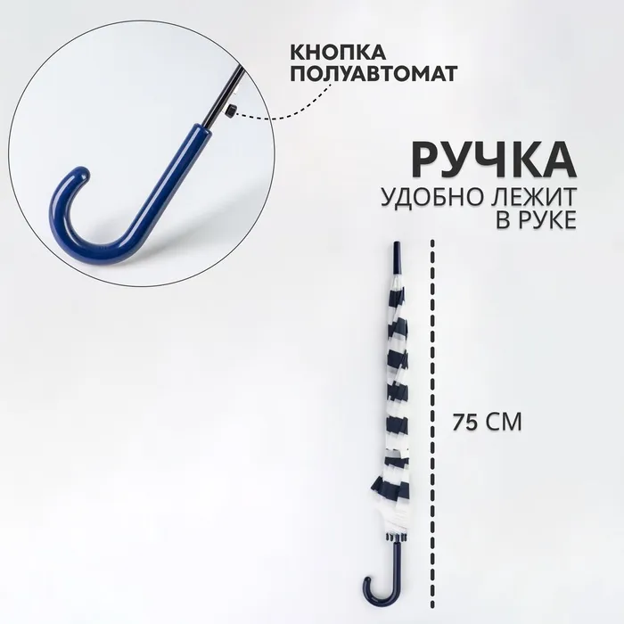 Зонт - трость полуавтоматический «Полосы», 8 спиц, R=45/55 см, d=90 см, МИКС — Характеристики