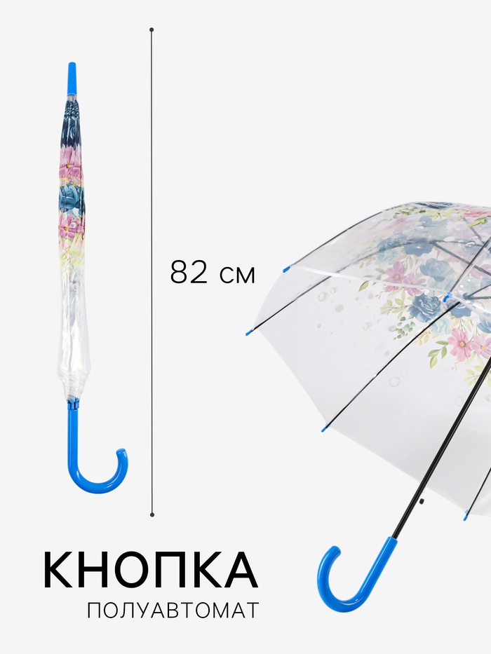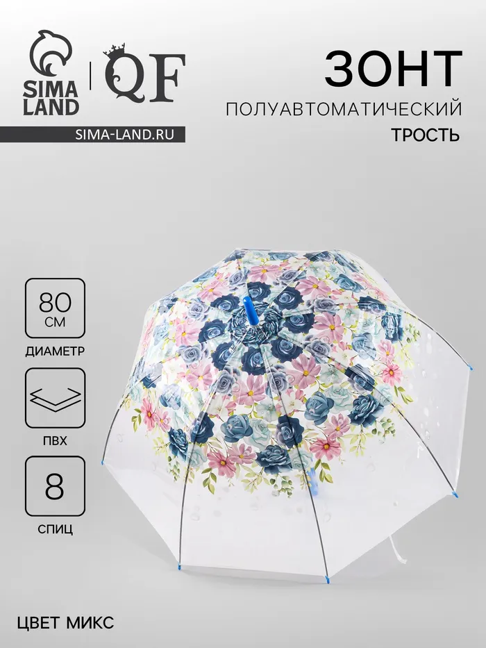 Зонт - трость полуавтоматический «Цветы», 8 спиц, R=40/58 см, d=80 см, МИКС — Характеристики