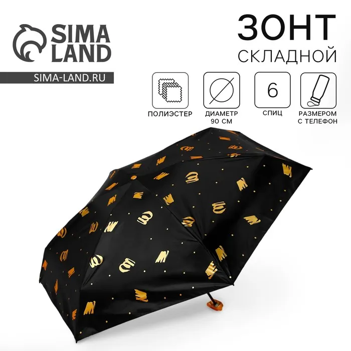 Зонт женский механический, 6 спиц, чёрный — Характеристики