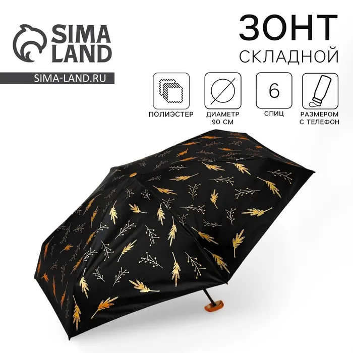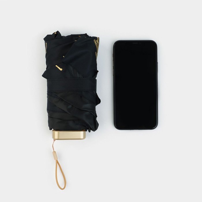 Зонт женский механический «Чёрное золото», 6 спиц, складывается в размер телефона — Характеристики