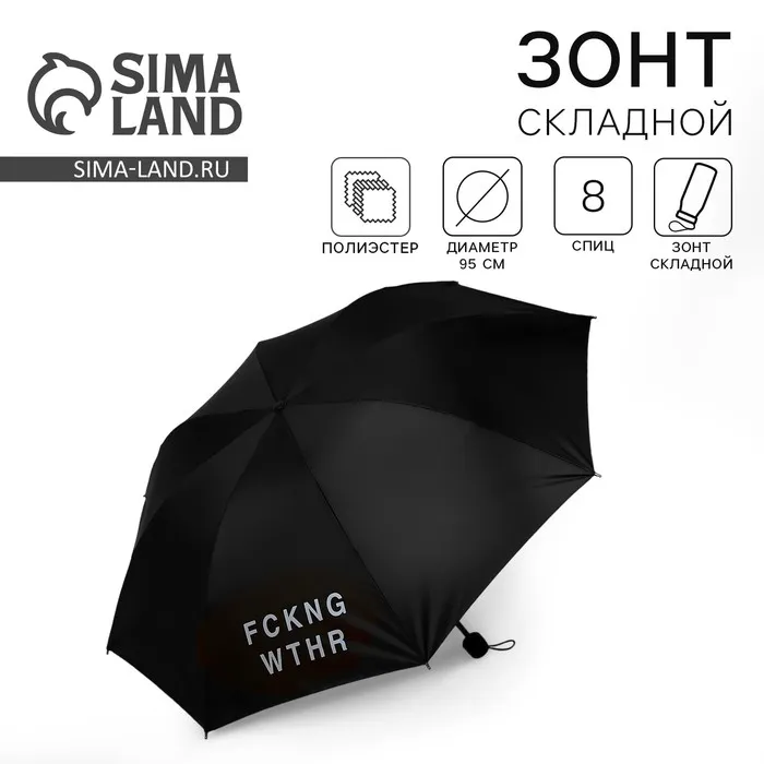 Зонт женский механический FCKNG WTHR, 8 спиц, d=95, чёрный — Характеристики
