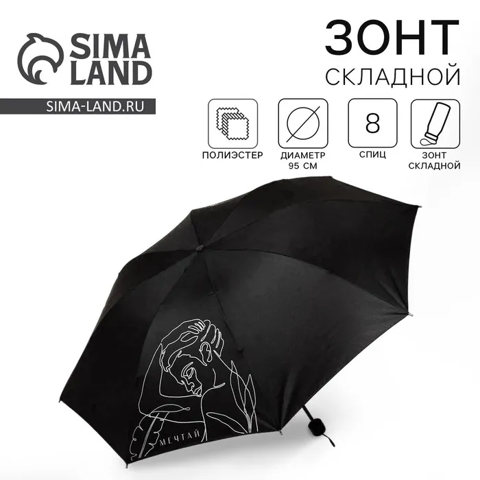 Зонт женский механический «Мечтай!», 8 спиц, d=95, чёрный — Характеристики