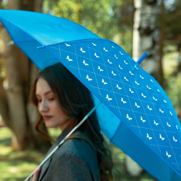 Зонт женский трость «Яркие бабочки», 8 спиц, d=90 см, синий — Характеристики