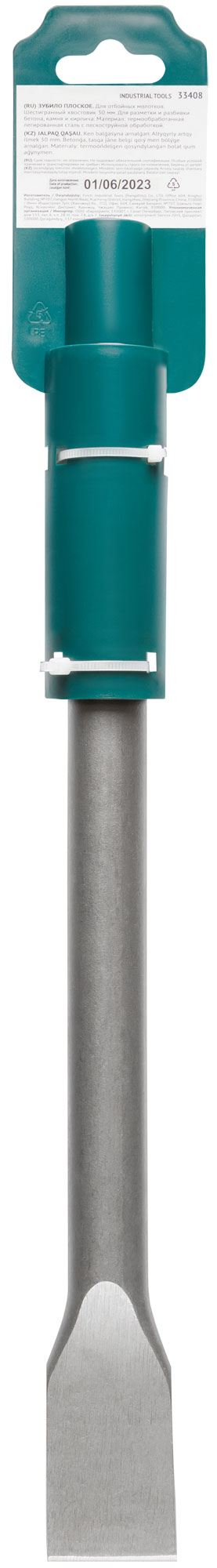 Зубило изготовлено из легированной стали с пескоструйной обработкой, что гарантирует его долговечность и устойчивость к износу. Размеры 30x40x410 мм обеспечивают оптимальную длину и ширину для комфортной работы с различными материалами.